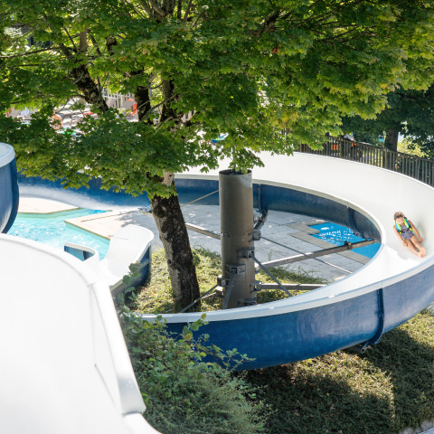 Tieners kunnen zich in alle veiligheid vermaken met de waterfun en de sensatie van een 40 meter lange glijbaan met uitzicht op het Lac de Sarrans.