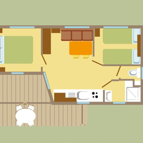 Our chalets, which are located at the highest point of the campsite, also have a terrace, however, this is not covered to fully enjoy the view.