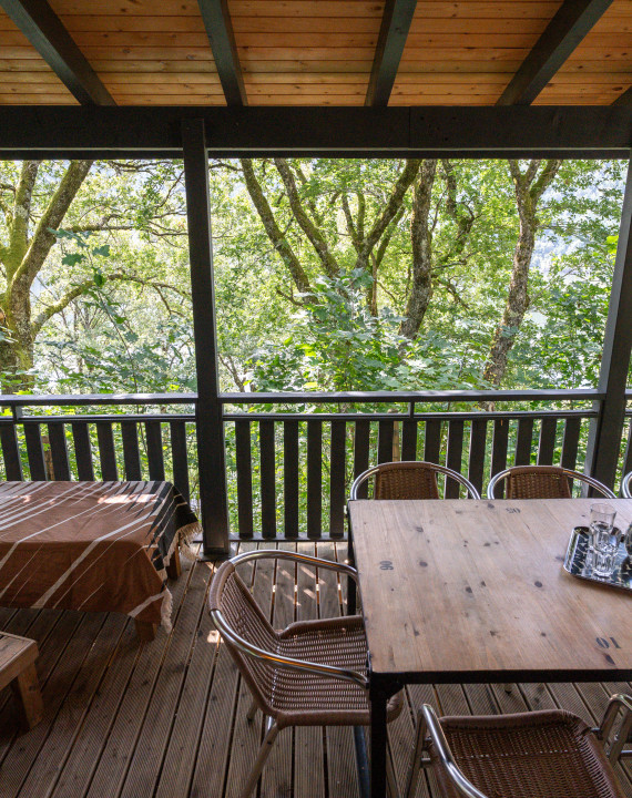 Au Camping La Source, chaque locatif, que ce soit lodge, bungalow, tente ou mobil-home, dispose d'une terrasse couverte en bois surélevée, spacieuse et privée, avec un coin salon de jardin. Bien orientées, nos terrasses offrent un panorama exceptionnel sur le lac de Sarrans.