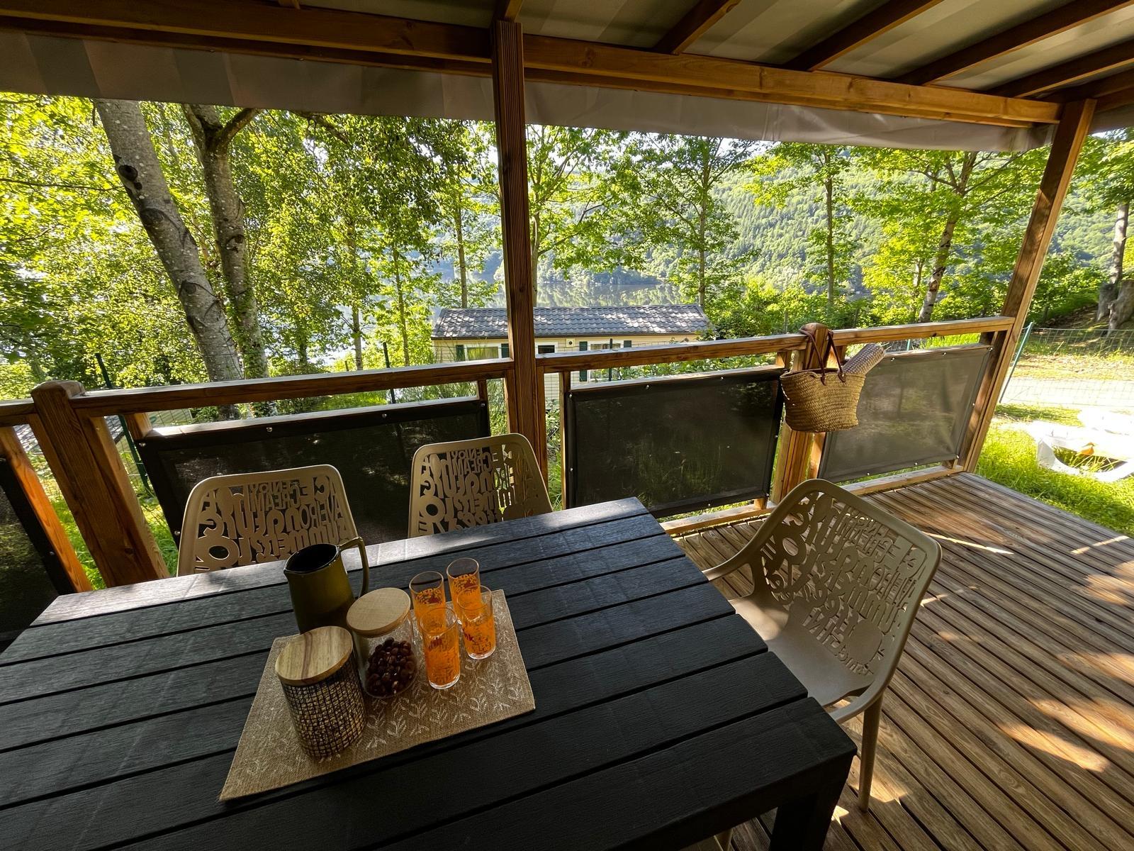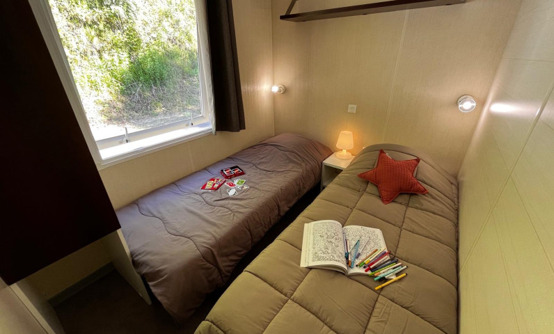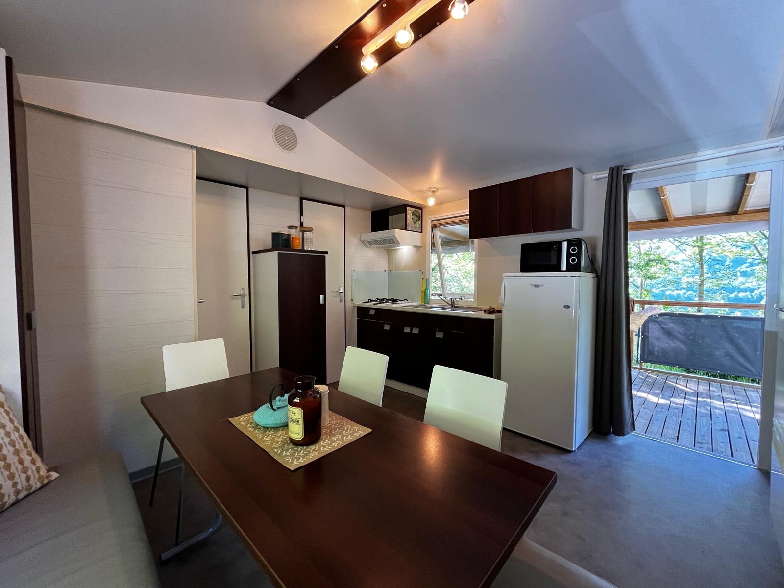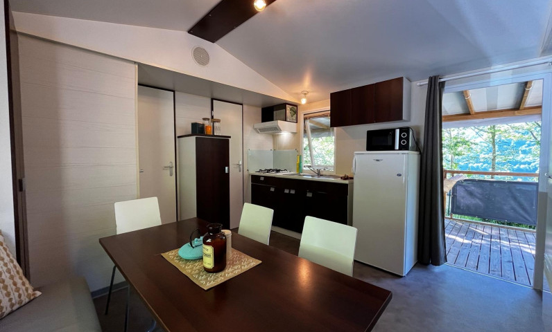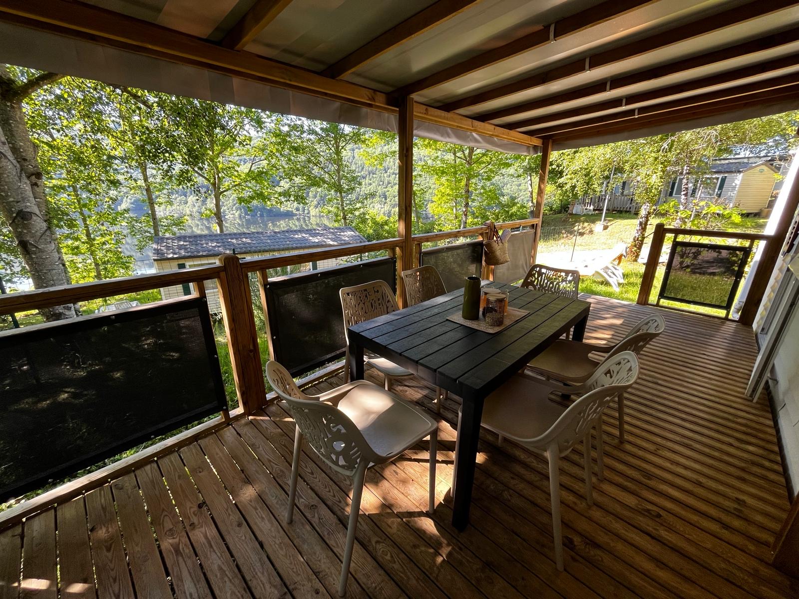 Op zoek naar ruime en handige accommodatie voor het hele gezin? Deze comfortabele stacaravan met drie slaapkamers en een overdekt houten terras is ideaal voor een vriendelijk verblijf. Met zijn moderne faciliteiten en buitenruimte kunt u volop genieten van de omliggende landschappen en gezinsactiviteiten. Een echte cocon om te ontspannen na een dag vol avontuur.