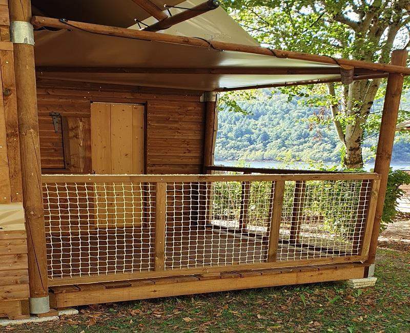 Wil je een verblijf in het groen, alle comfort? Deze lodge Confort Aventure is perfect voor gezinnen of koppels onderweg. Met zijn twee slaapkamers, het overdekte terras en de slimme indeling is het het ideale startpunt om de natuur rond het meer te verkennen. 'S Avonds ontmoeten we elkaar rond een eenvoudige maaltijd ... en goede herinneringen om te delen.