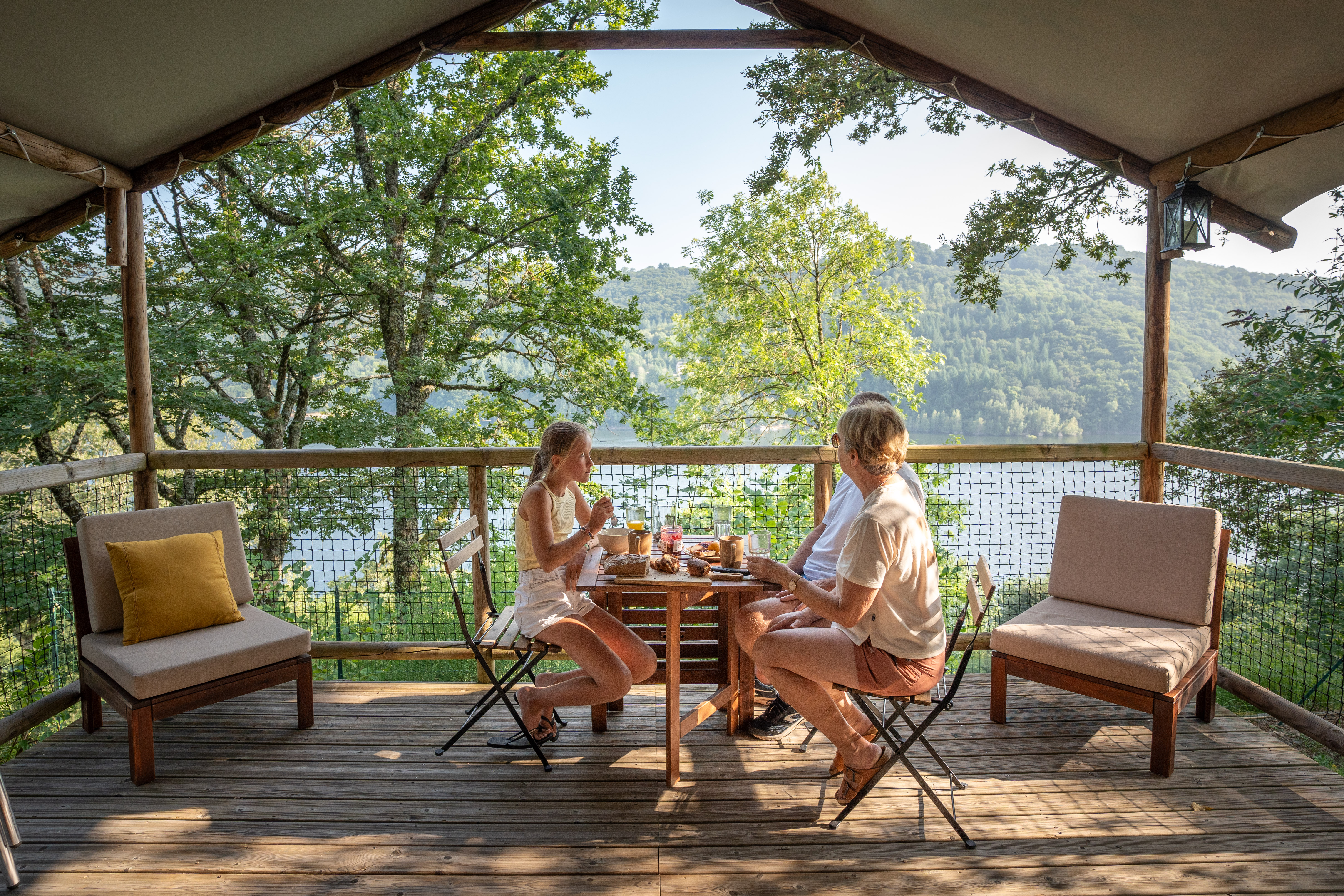 - Lodge Comfort Laussac (4/5 personen): een unieke accommodatie die natuur en moderniteit combineert met een groot overdekt terras om van het buitenleven te genieten.