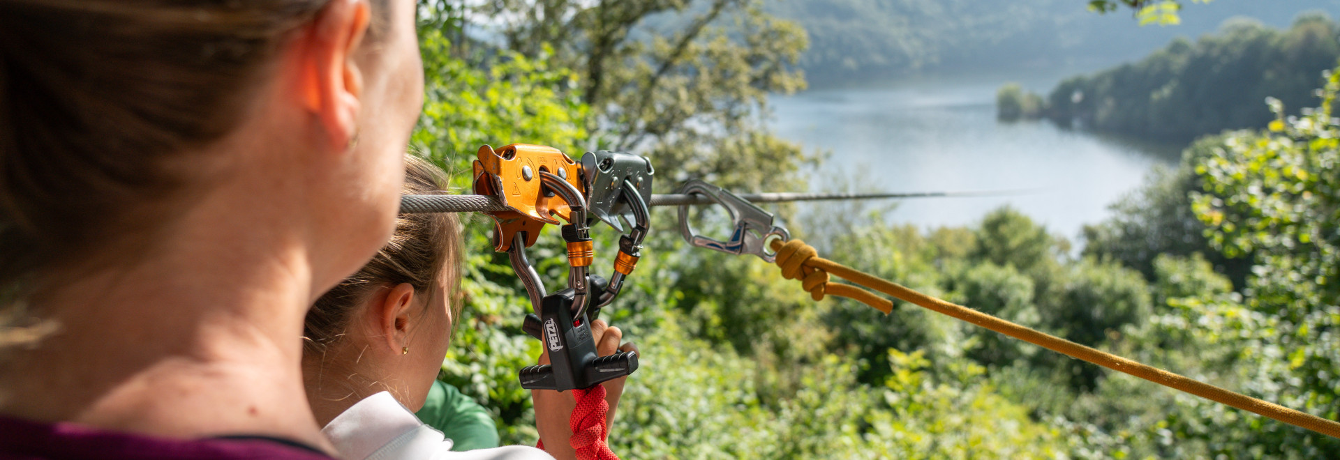 Op zoek naar spanning? Kom en ontdek onze spectaculaire zipline, bereikbaar vanaf 5 jaar en tot maximaal 100 kg! Trakteer uzelf op een onvergetelijke afdaling met een adembenemend uitzicht op het meer, even rijk aan adrenaline en emoties.